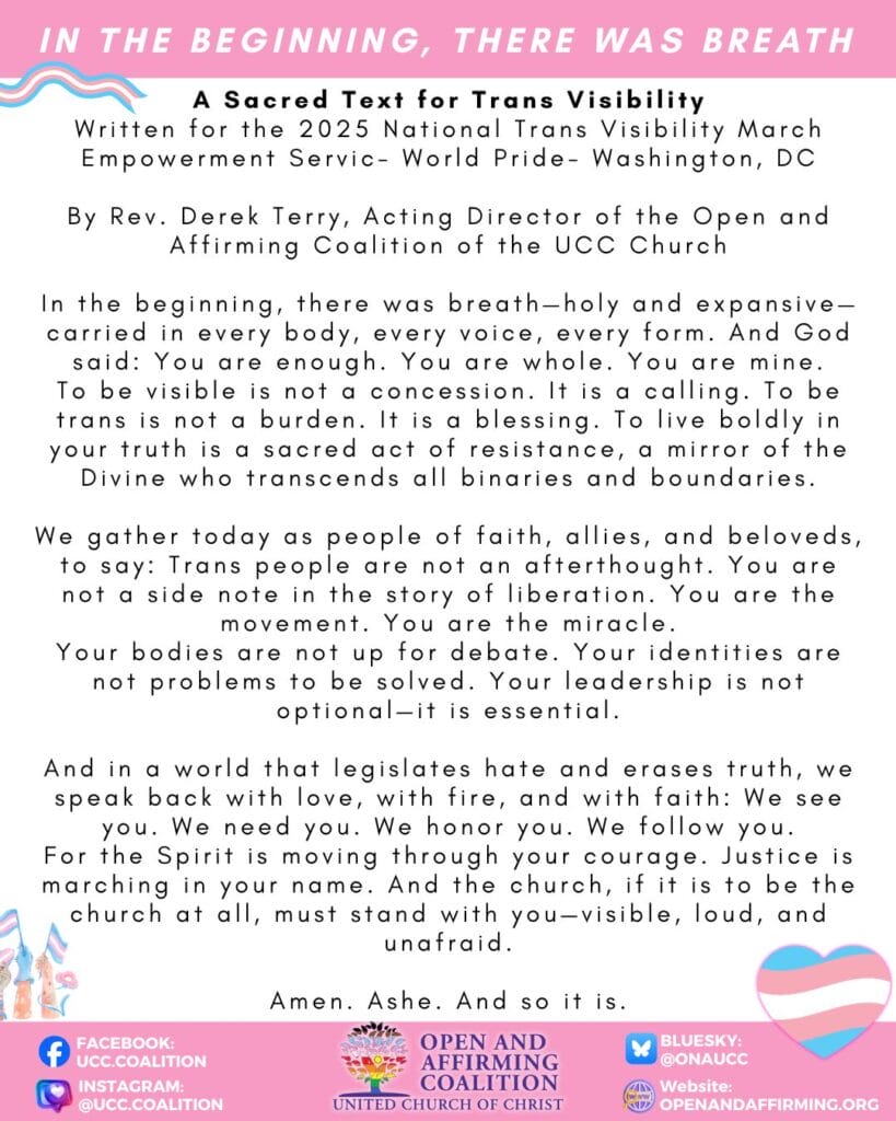 Here is a Sacred Text that I wrote and Shared at Last Year’s Trans Visibility March Empowerment Service